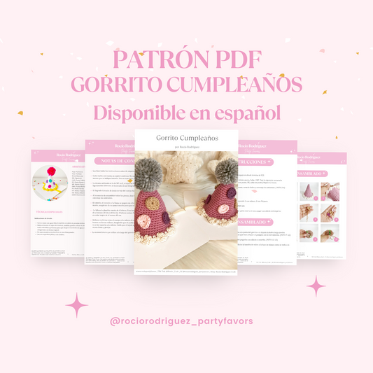 Patrón en ESPAÑOL gorrito cumpleaños